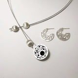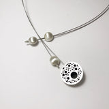 • Silver and black hoopla pendant: 34mm round, 9mm deep