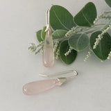 • Simple, elegant sterling silver and Rose Quartz drop earrings, designed and handmade by me in my Sydney studio