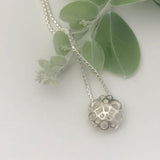 • A polished sterling silver flower necklace, designed and handmade by me in my Sydney studio