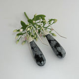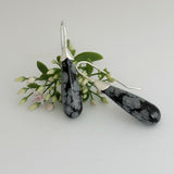Snowflake Obsidian Silver Drop Tulip Earrings