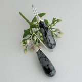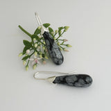 • Elegant Sterling Silver and Snowflake Obsidian drop earrings, designed and handmade by me in my Sydney studio