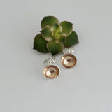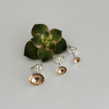 These earrings are the perfect mix of sterling silver and gold. It has a silver edge with a rose gold dome.