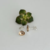 These earrings are handmade sterling silver studs with fused rose gold. Fused gold is gold that has been fused to sterling silver. It is a thicker layer of gold than if it was plated.
