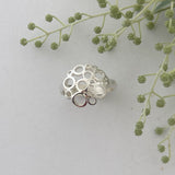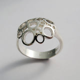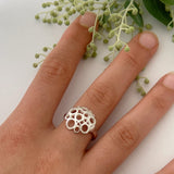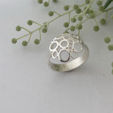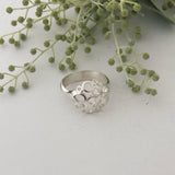 This ring is so comfortable to wear. It sits low on the finger and has a nice wide band.