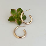 I have made these earrings with a square profile. The edge of the square is facing forward for an added detail. I have made these earrings by melting down rose gold and then rolling the gold out to the profile I wanted. They are a subtle rosy colour.