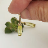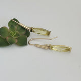 Perfect setting to show off these gorgeous stones. The Citrin stones are set on their  ends in yellow gold. They move from the gold hooks.