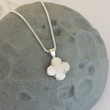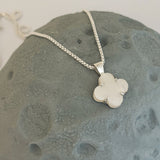 • A handcrafted sterling silver necklace featuring a mother of pearl stone, designed and made by me in my Sydney studio