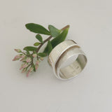 Gorgeous geometric Handmade sterling silver wide ring with wrap design. This striking ring will be your new favourite ring with its polished Sterling Silver wrap design with the lower level satin finish.