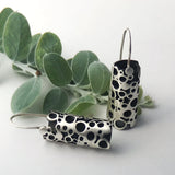 These gorgeous Sterling Silver Handmade earrings have been finished with a matte finish. They have been blackened inside the barrel to make the sterling silver pattern really stand out.