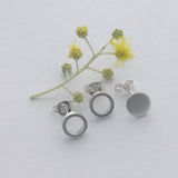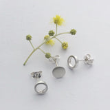 These earrings are 7 mm round, two has a hole in the middle and the other is a sterling silver dot.