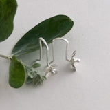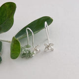 These adorable handmade flower drop earrings feature a delicate flower design with a sterling silver ball in the middle.