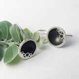I have blackened this round sterling silver drop earrings to really show off the simple elegant bubble design.
